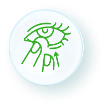 Com a outra mão, segura a pálpebra superior para cima.