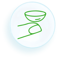 Coloca a lente sobre o dedo indicador seco. Com a mesma mão, segura a pálpebra inferior para baixo.