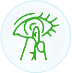 Retira lentamente o dedo indicador e, em seguida, solta a pálpebra inferior. Olha para baixo e solta a pálpebra superior.